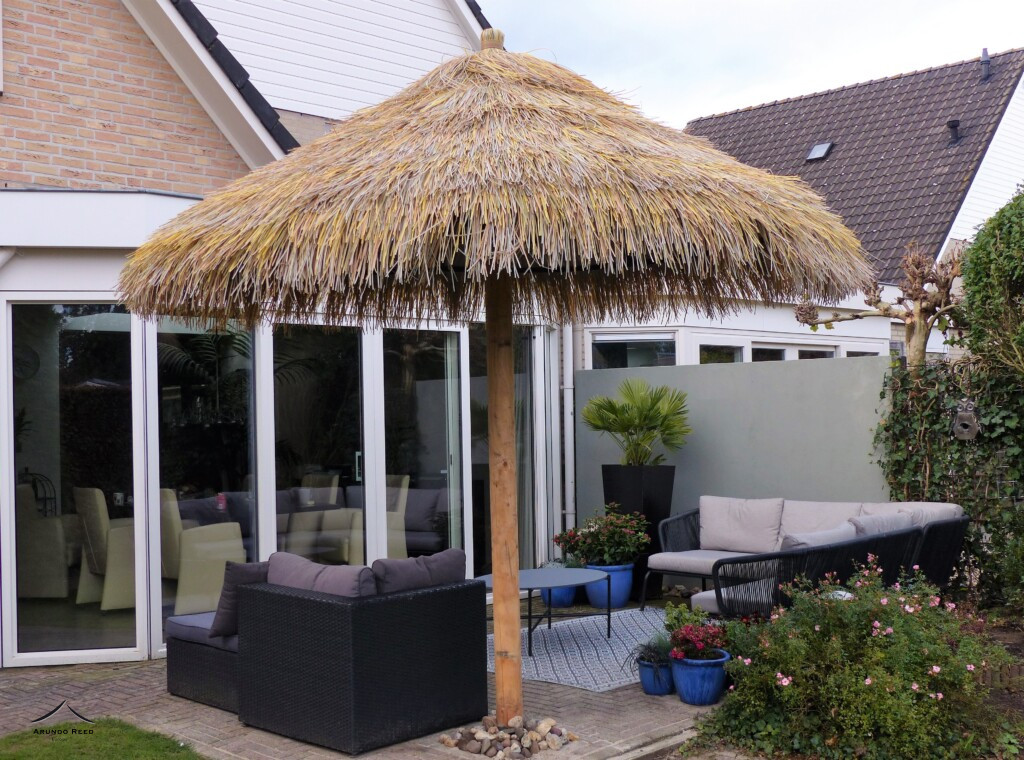 We hebben ook de Asian reed, een kunstrieten dakbedekking die je dak een natuurlijke, exotische en tropische uitstraling geeft. Een prachtig product voor de daken in dierentuinen of recreatieparken. En natuurlijk bij zwembaden en campings. Maar ook voor uw prieel of tuinhuis in de achtertuin, de vakantie sfeer bij u thuis. De Asian reed is gemaakt van HDPE. HDPE is een duurzaam materiaal met een levensduur van meer dan 40 jaar en is bovendien 100% recyclebaar. De Asian reed behoud zijn kleur. De Asian reed wordt veel verkocht op de umbrella’s, maar kan natuurlijk ook heel mooi op een bar of een prieel.